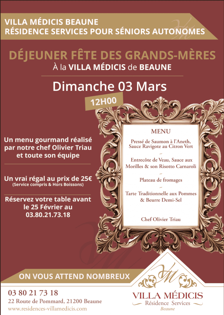 Ne manquez pas notre déjeuner spécial le dimanche 3 mars 2024 à la Villa Médicis Beaune.
